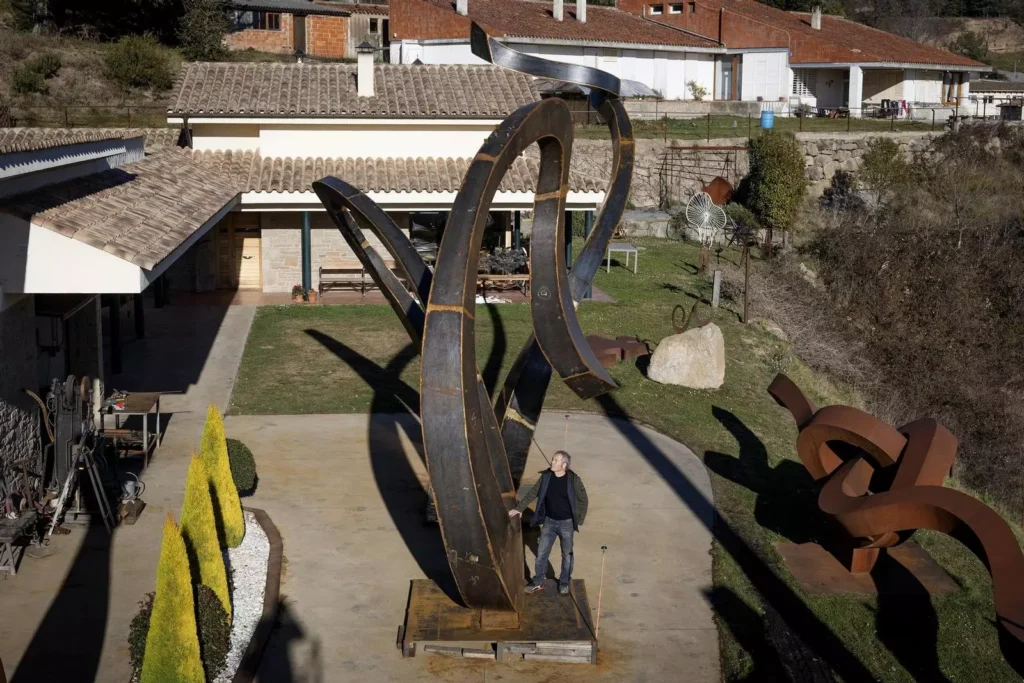 El forjador y escultor Enric Pla Montferrer (Lluçà, 1969) ha vuelto a cumplir uno de sus sueños. Después de convertirse en el forjador de la Sagrada Familia, un destacado coleccionista mexicano le ha comprado una escultura de una bicicleta de 9,5 metros de alto por 6 de largo. Ahora el artista le está dando los últimos retoques en el patio del taller, y en unos diez días la desmontará para embarcarla hacia México dentro de un contenedor naval. Como suele ocurrir con sus trabajos, esta nueva escultura tiene un carácter muy dinámico, así que ha representado la bicicleta como si un hipotético ciclista estuviera esprintando y la hiciera mover de un lado a otro. «Me gusta mucho el movimiento, que las esculturas sean tridimensionales, y que a medida que las recorres tengan puntos de vista distintos», afirma Montferrer.